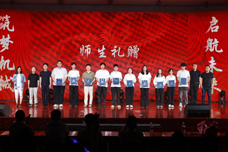 受表彰员工代表、国家奖学金获得者、机设213班万华让和研22丁晨晨先后作了发言。毕业生代表向教师代表敬送鲜花,表达对师恩最真挚的谢意。教师代表向毕业生赠送纪念品,祝福毕业生们扬帆远航、前程似锦。