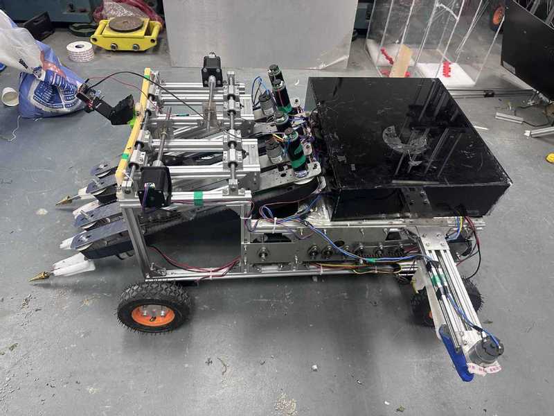 针对我国南方复杂地形小萝卜收获难的问题,参赛团队研究垄沟式底盘,创新采用双排加持带实现双垄收割,适应复杂地形;设计滚轮式分拣装置,可根据萝卜大小自动分类并封袋;基于OpenMV视觉模块与STM32F407图像处理技术,精准定位萝卜并自动调整夹持带间距;结合5G通信,精准定位并收获双排萝卜,实现复杂地形小萝卜采收低延迟、高可靠远程控制与监测。