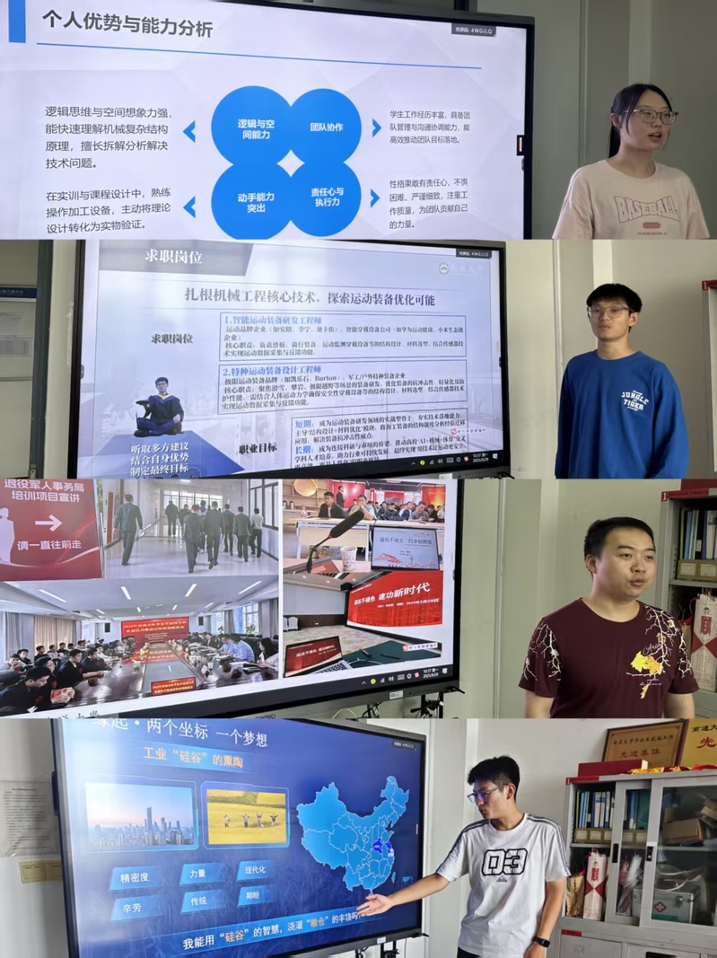 选拔现场,各年级推荐选手一一进行作品展示。就业赛道的研2024级研究生赵金雨等同学,分别结合各自的职业目标,从选择初心、职业素养、成长经历等多维度,全方位展现个人发展路径与就业市场需求的适应度等。成长赛道的2024级王昌克等同学结合各自的兴趣爱好、目标定位等,展示各自围绕目标定位持续开展的学习与实践以及初步所取得的成果等。