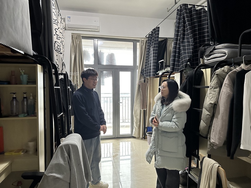 检查过程中,殷春华与留校员工进行了面对面交流,详细了解他们的留校安排与实际需求,并着重强调了多项安全注意事项:一是增强个人安全意识,保持通讯畅通,夜间尽量避免单独外出,注意出行安全;二是严格遵守学校宿舍管理规定,严禁使用违规电器,做到人走电断,切实防范用电火灾风险;三是妥善保管个人财物,离开宿舍及时锁门关窗,共同维护宿舍区域防盗安全;四是提醒同学们注意保持宿舍卫生整洁,勤通风,预防疾病,度过一个平安、健康的假期。
